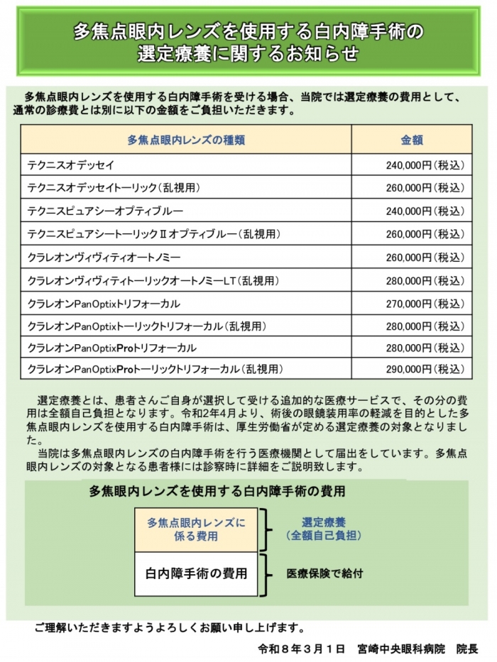 また、眼の状態の診断によって眼内レンズの種類が選択できない場合もあります。