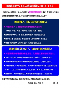 【重要】新型コロナウイルス感染対策について(2020年04月08日)