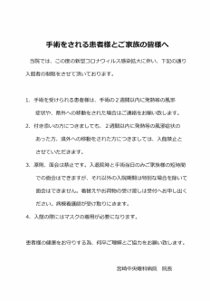 【重要】手術をされる患者様とご家族の皆様へ(2020年07月28日)