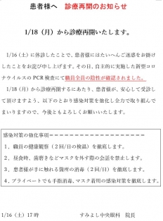 【重要】患者様へ診療再開のお知らせ(すみよし中央眼科)(2021年01月16日)