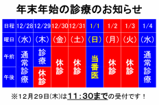 年末年始の診療のお知らせ(宮崎中央眼科病院)(2022年12月01日)