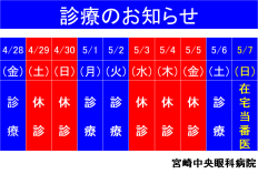 ゴールデンウィーク期間中の診療案内(宮崎中央眼科病院)(2023年04月26日)